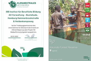 2021 stieß das IBB rund 216 Tonnen CO2-Äquivalente aus. Durchschnittlich verursacht ein Mensch in Deutschland ca. 11,6 Tonnen CO2 durch seine Lebensführung, also beispielsweise durch Verschwendung von Lebensmitteln, überflüssige Autofahrten, Flugreisen oder Energievergeudung. Die IBB AG hat erkannt, dass freiwillige Emissionsreduzierungen und der Ausgleich von unvermeidbaren Emissionen unerlässlich sind, will man dem Klimawandel entschlossen entgegentreten. Daher hat sich das Unternehmen dafür entschieden, seinen CO2-Ausstoß zu neutralisieren. Mit den erworbenen Zertifikaten unterstützt das IBB ein Waldaufforstungsprojekt in Uganda, das durch den Gold-Standard zertifiziert wurde – dem wichtigsten Zertifizierungssystem für Projekte zur Reduzierung von CO2 in Schwellen- und Entwicklungsländern.
