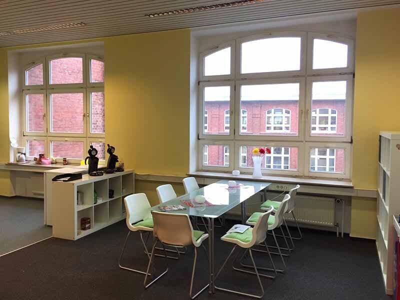 Sie finden uns im dritten Stock, den Sie bequem mit dem Fahrstuhl erreichen. Hier stehen Ihnen acht Seminarräume mit modernster Ausstattung zur Verfügung, in denen der Unterricht von 8 bis 16:15 Uhr stattfindet. Hohe Decken und liebevolle Details sorgen für ein angenehmes Ambiente während Ihrer Fortbildung. In Ihren Pausen können Sie unsere Küche inklusive Kaffeeautomat und Snackbar nutzen und sich in einer unserer Sitzecken mit anderen Teilnehmern austauschen. Durch die zentrale Lage mitten in der Innenstadt bietet sich aber auch ein (Einkaufs-)Bummel durch die benachbarten Geschäfte an.