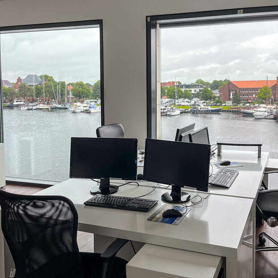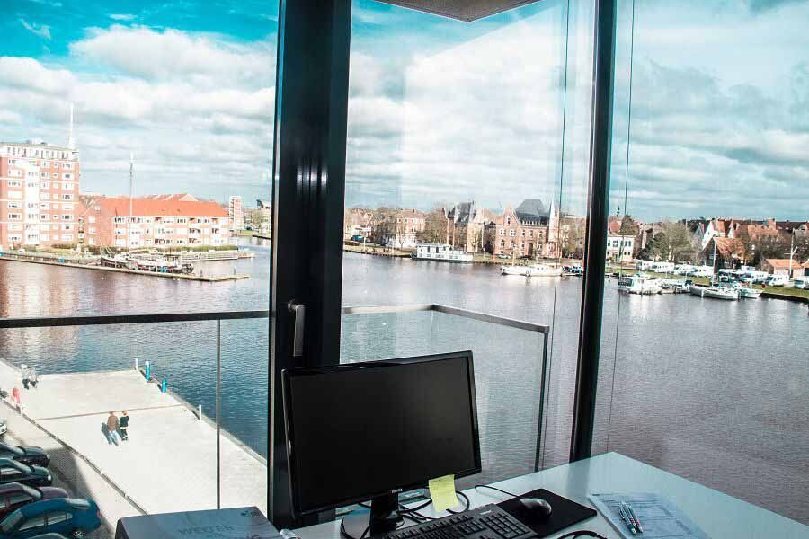 Das Büro für Weiterbildungen, Fortbildungen und Umschulungen des IBB ist bereits seit den frühen 80er Jahren fester Bestandteil der Stadt Emden und seit Januar 2015 an diesem exklusiven Standort direkt am Alten Binnenhafen zu finden. Durch seine fußbodentiefen Fenster ermöglicht er unseren Teilnehmern und Mitarbeitern einen wunderschönen Ausblick auf den Hafen, und die sehr exklusive Ausstattung der klimatisierten Räume mit mehr als 40 Arbeitsplätzen ermöglicht ein entspanntes Lernumfeld. Zwischen 8 und 16:15 Uhr findet hier der Unterricht statt. Im Winter lädt das Kaminzimmer dazu ein, sich zurückzuziehen, und im Sommer lockt eine große bepflanzte Dachterrasse.