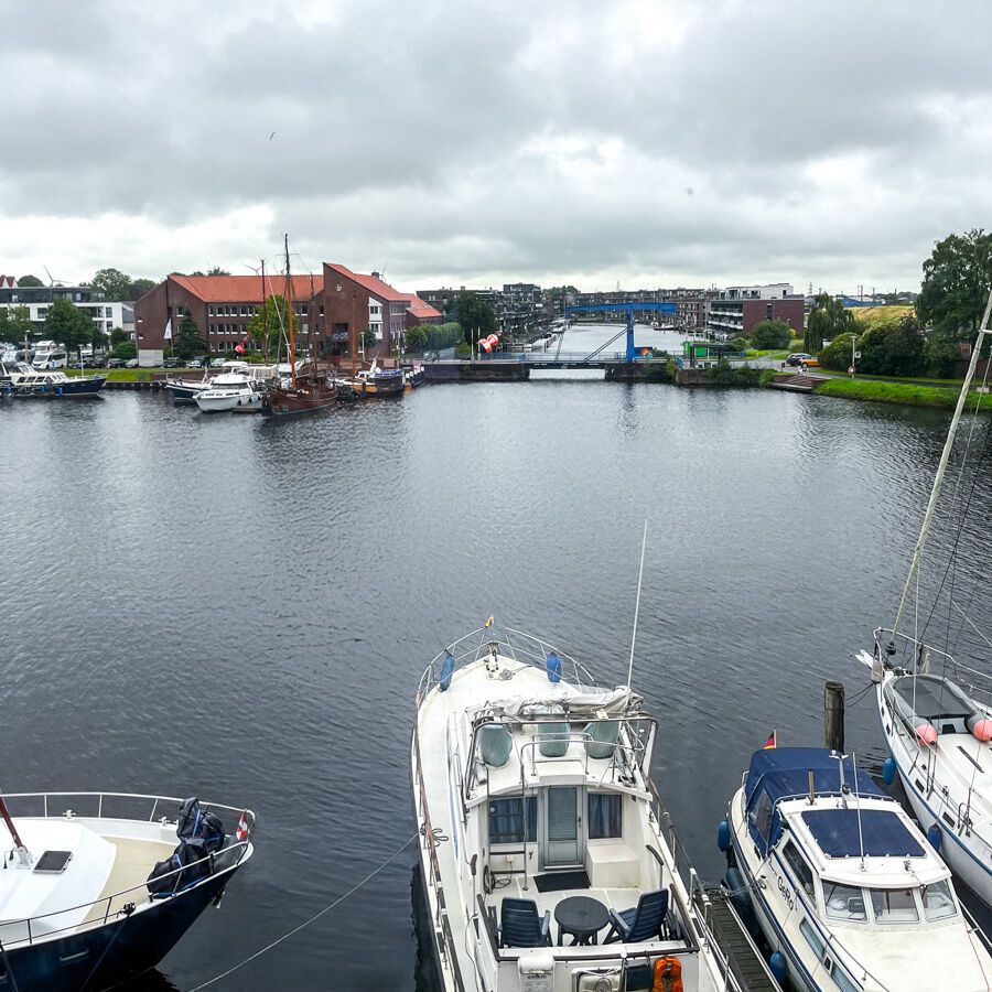 Alle Richtungen: B210 Richtung Emden Innenstadt, geradeaus Auricher Straße, geradeaus Neutorstraße, am Rathausplatz rechts auf die Straße Am Delft, nach 300 Metern links auf die Promenade am Alten Binnenhafen