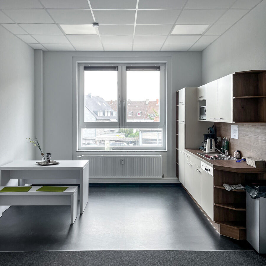 Pause gefällig? Die offene Einbauküche mit Sitzecke hält Kühlschrank, Mikrowelle, Kaffeemaschine, Wasserkocher und Geschirrspüler bereit. Wer etwas frische Luft schnappen möchte, kann in den nahegelegenen Stadtpark Liebesgrund / Hoher Wall gehen. In etwa fünf Gehminuten erreichen Sie auch die Innenstadt und zum Beispiel die Arneken Galerie.