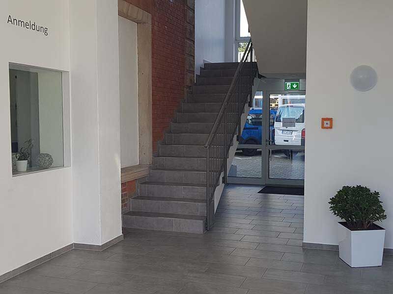 Der Ort für Ihre Weiterbildung ist der frühere Gebäudekomplex der Ibbenbürener Volkszeitung. Die im vorletzten Jahrhundert entstandenen Gebäude wurden aufwändig restauriert und mit einem Neubau zusammengeführt. Ihr Unterricht findet zwischen 8 und 16:15 Uhr im dritten Stock des Hauptgebäudes statt. Die Räume und Zugänge sind barrierefrei gestaltet. Ihr Schulungsraum ist liebevoll und gleichermaßen funktional eingerichtet. Viel Tageslicht und ein neuer PVC-Boden im Parkettstil sorgen für eine einladende Atmosphäre. Der Blick fällt direkt ins Grüne auf den Park. Neben den acht Arbeitsplätzen gibt es auch eine kleine Pausen-Ecke. In der zweiten Etage finden Sie außerdem einen schönen Aufenthaltsraum mit einem Kaffeeautomaten, einem Wasserspender und einer kleinen Teeküche.