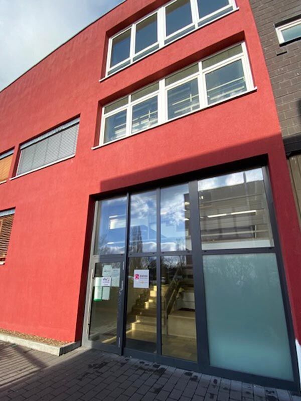 Eine große Glasfront bildet den Eingangsbereich des klassischen Bürokomplexes. Ihre Schulungsräume im Erdgeschoss sorgen mit großen Fenstern und farblichen Akzenten für eine angenehme Lernatmosphäre. Ihre Unterrichtszeit liegt zwischen 8 und 16:15 Uhr, aber natürlich sind Ihnen auch Pausen vergönnt. Stärken Sie sich in der vollausgestatteten Teilnehmerküche oder besorgen Sie sich auswärts einen Snack. In der Nähe finden Sie einen großen Supermarkt mit integriertem Café, eine Bäckerei sowie weitere Einkaufsmöglichkeiten. Und direkt gegenüber befindet sich ein angesagter Italiener.