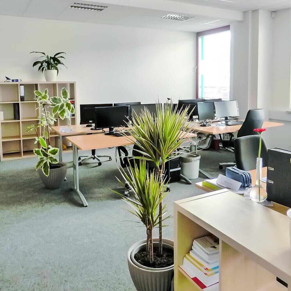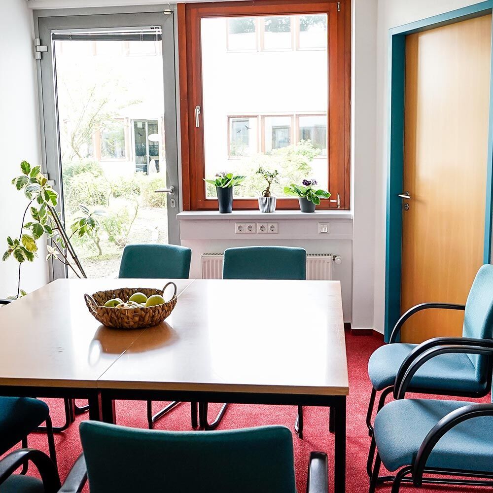 Die Schulungsräume befinden sich im Erdgeschoss des Bürokomplexes in der Gebrüder-Boll-Straße 1 A und bieten einen Blick aufs Grüne. Zwischendurch muss natürlich auch mal Zeit zum Entspannen bleiben – zum Beispiel in der Lounge mit Blick auf den japanisch angelegten Innenhof.