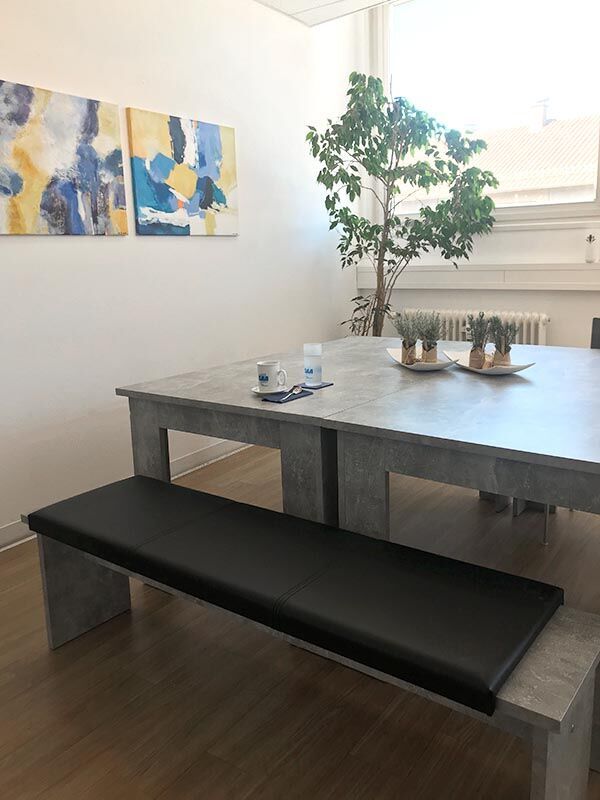 Ihre Unterrichtszeiten liegen zwischen 8 und 16:15 Uhr, aber Sie haben natürlich auch Zeit zur Erholung. Entspannen Sie sich in den zwei großzügigen Aulen mit Pflanzen, Bildern und Möbeln. Rauchern steht eine separate Lounge mit Lüftung zur Verfügung. Ein moderner Küchenblock mit Herd, Kühlschrank, Wasserkocher und Kaffeemaschine sorgt dafür, dass Sie sich stärken können. Außerdem finden Sie hier einen Automaten mit diversen Heißgetränken. Ein Tipp für alle, die gerne mal auswärts essen: Das Restaurant im Kulturhaus Osterfeld bietet einen täglich frisch zubereiteten Mittagstisch an und ist in zwei Minuten in der Parallelstraße erreichbar. Ein weiteres Restaurant, Pizzaservice, Kiosk und Bäcker finden Sie gleich gegenüber.